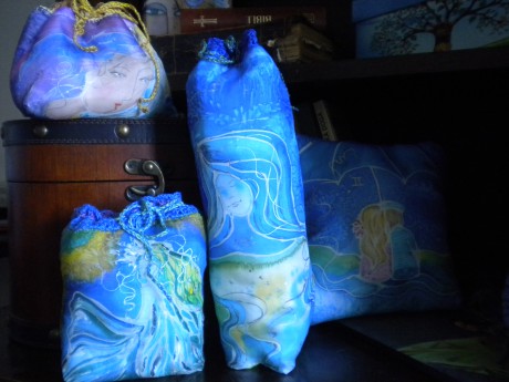 Modrá taštička se znamením Vodnáře,možno ji použít jako obal na parfém,či jinou lahvičku.c.380,-.Malá taštička se znamením Panna,možno na mobil,c.280,-,Taštička s vílou zelená,možno i jako dekorace na stolek na ruzné drobnosti,c.280,-